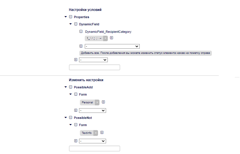 Please tell me how, when choosing one criterion from the field, new dynamic fields were created to select a sub category
