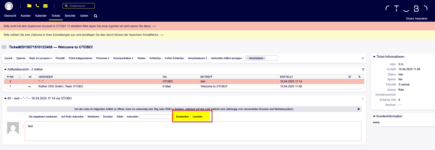 Bei dem neu installiertem Otobo funktioniert das ohne Probleme.