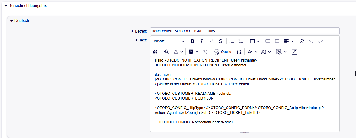 So sieht der Benachrichtigunstext bei uns intern aus: