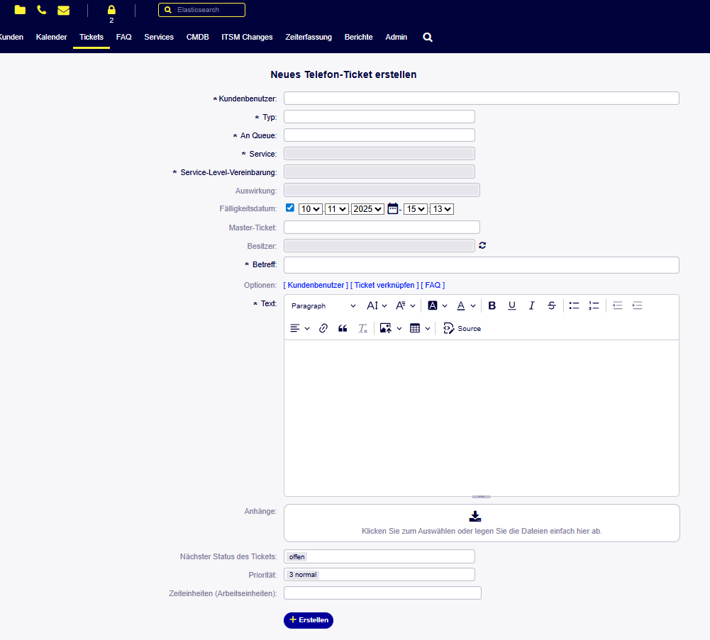 ich komme leider nicht weiter. Könnte mir einer zeigen wie ich es schaffe, dass die Felder (Besitzer, Service, SLA) nicht mehr ausgegraut sind? Agenten, Services und SLAs sind schon vorhanden.