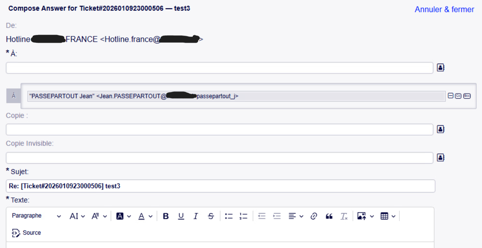 As seen in the image, there is a ticket to create, and when I want to reply to it, it doesn’t work because we see the LDAP username passepartout_j. And I can’t find the i. -