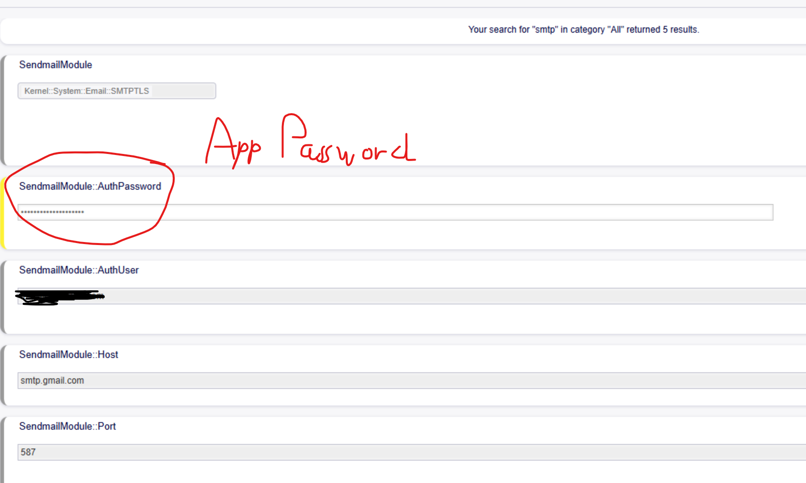 - App Passwort in die SMPT Einstellungen (Authentication Password) reinkopieren, wo voher vermutlich das Passwort stand, um zum Gmail zu verbinden.