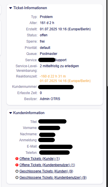 wir sind vor kurzem von unserem alten OTRS 5 über Znuny 6 auf OTOBO 10 bzw. 11 gewechselt. Das System läuft grundsätzlich, aber seit der Migration tauchen immer mehr kleine Baustellen auf. Vieles konnte ich schon beheben, aber ein Problem bekomme ich einfach nicht gelöst.